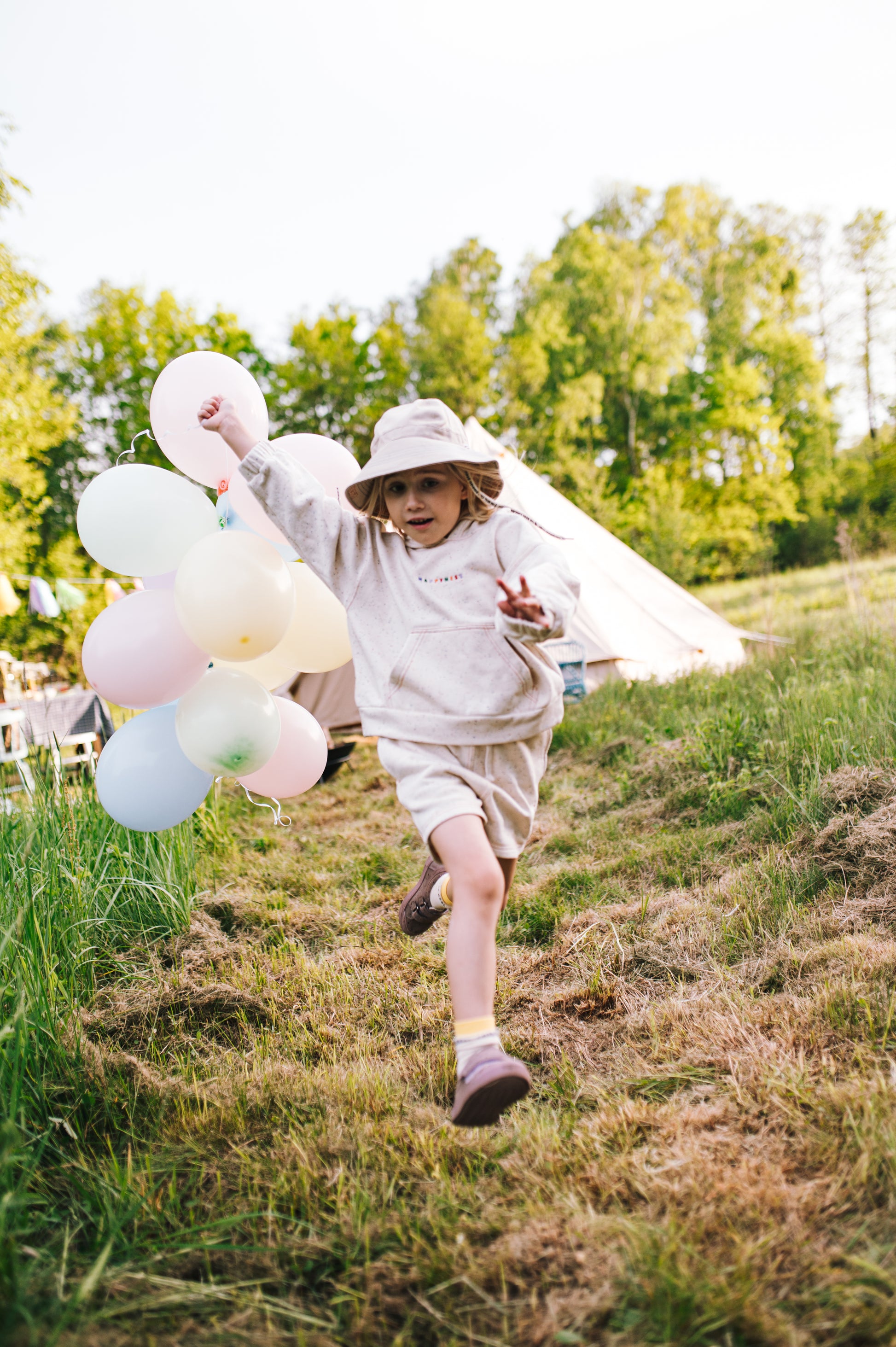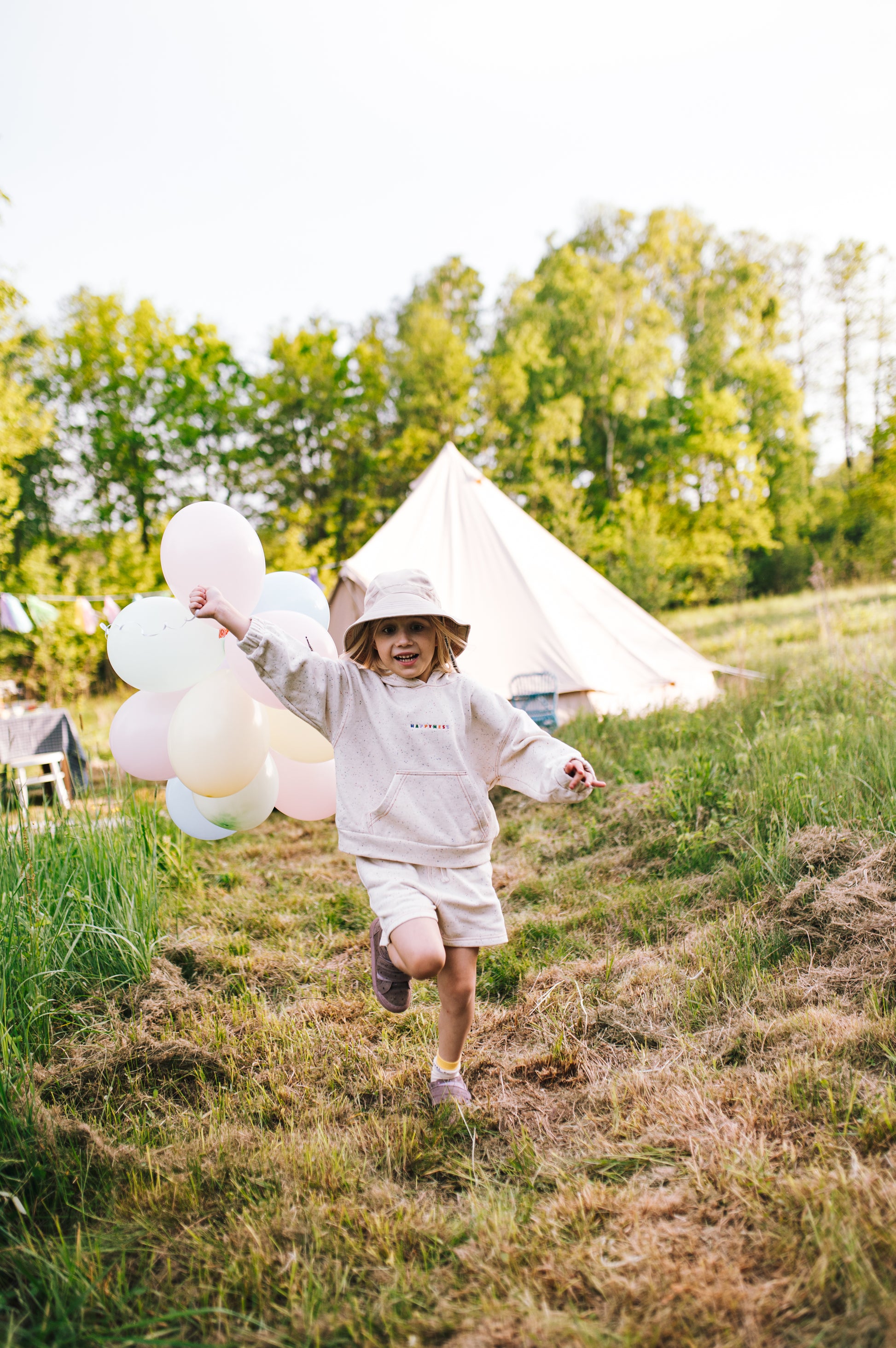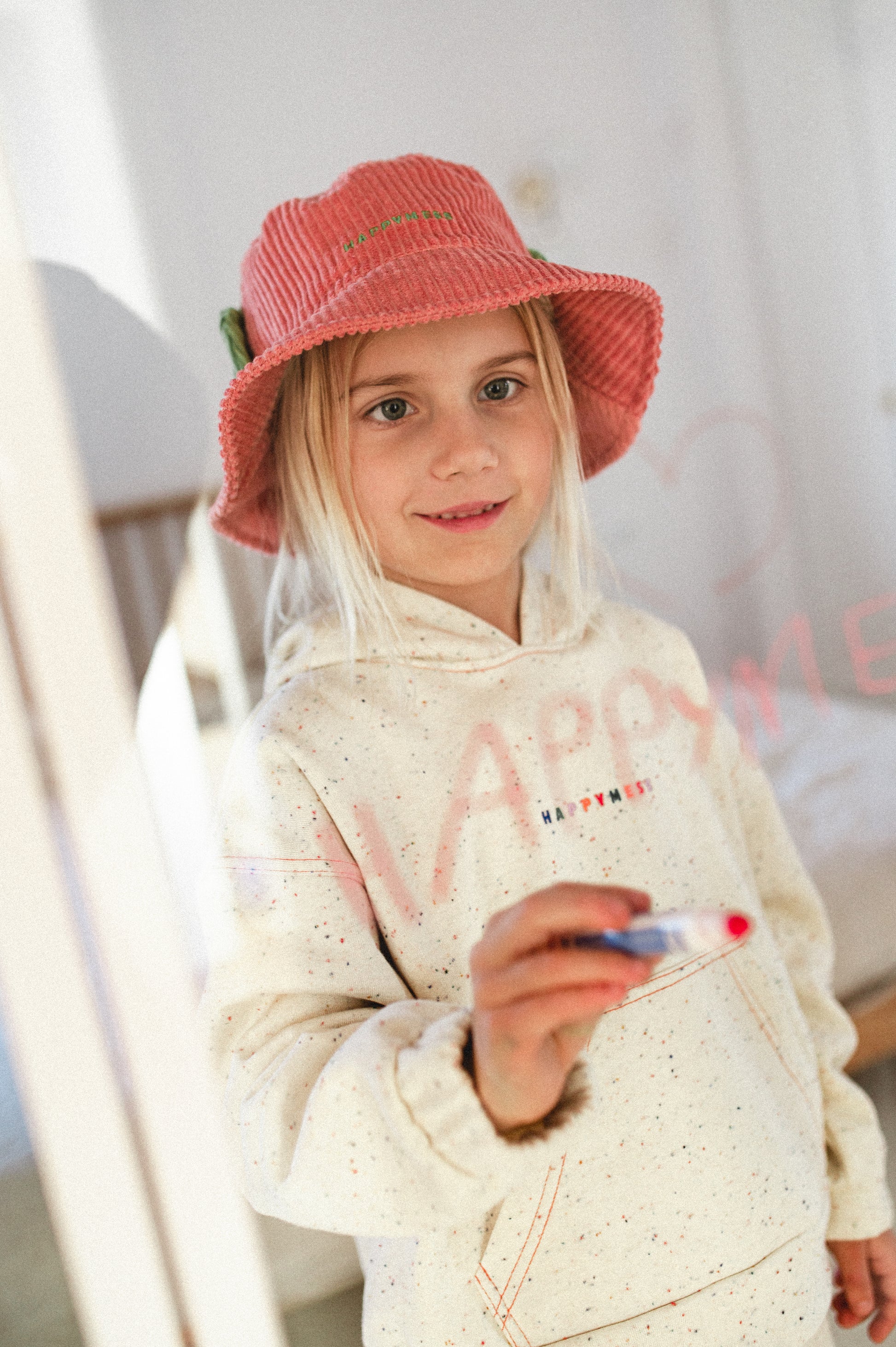 胸元のカラフルなロゴとコンフェティのようなデザインが、着るだけで気分を明るくしてくれる1枚。元気いっぱいに動き回るキッズにぴったりの、遊び心あふれるフーディです。